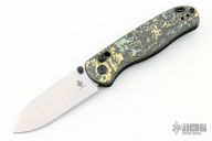 With unique patterns on the Fatcarbon handle and the handle crafted just about symmetrical to the 20CV drop point blade, the knife has a balanced aesthetic.