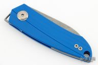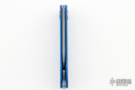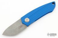 This Chaveta by Daniel Dunaway-Knight features a dark stonewashed blade with a matching flipper tap. The handle has a blue G-10 frame with a titanium backspacer.  Nice double detent, and blade seating. Comes with a zippered case and COA.  New from maker!