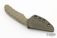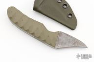 This Pikal by Joe Watson features a stonewashed blade with bronzed patina, .173" blade stock and 1.113" blade depth, full tang construction. The handle has green G-10 scales. Comes with a kydex sheath and COA dated 7-3-22. Excellent condition.