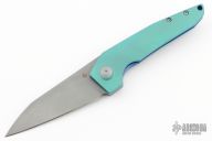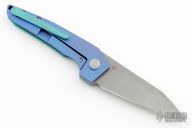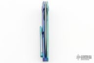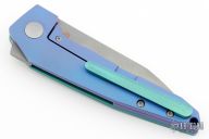 This VK1 knife is a new folding model of Steven Kempa’s fixed blade knife. Once the blade is exposed, the flipper tab is concealed inside of the handle. This futuristic design features a titanium handle with a reverse tanto blade made from CPM-S35VN. The handle is shaped perfectly to be comfortable in any hand thanks to its ergonomic design. This knife has a custom anodization. Comes with original box and papers. Excellent condition.