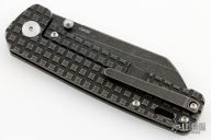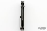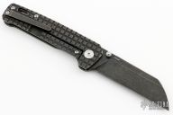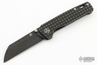 This QSP Penguin has a dark tumbled sheepsfoot blade with dual thumbstuds. The handle has milled titanium frame with a matching tip up pocket clip. Comes with original box, excellent condition.
