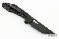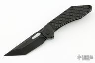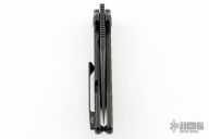 This knife features a black stonewashed tanto style blade with a notched thumbrest and flipper tab. The handle has a black milled titanium frame with a matching tip up pocket clip. Includes the original box and papers. Excellent Condition.