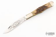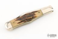 This Ka-Bar slipjoint is dated 1981. It has a mirror polished blade with nail nick. The handle has nickel silver bolsters, stag scales, brass liners, and stainless steel spring. Has a few light scratches, otherwise excellent condition. #3891