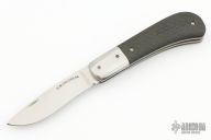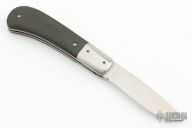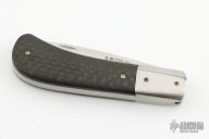 This Slipjoint from D.W. Childress features a hand rub satin finished drop point blade with nail nick. The handle has dovetailed stainless steel bolsters, carbon fiber covers, titanium liners, stainless steel spring. Has a half-stop. Has a few light scratches, otherwise excellent condition.