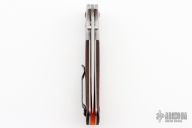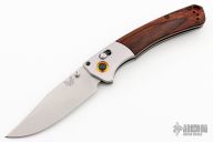 Benchmade Hunt series knives make hunting chores a breeze with a combination of high performance materials and knife design know-how. The Crooked River folder employs premium CPM-S30V stainless steel, for a long-lasting, super sharp cutting edge. The handle of the 15080-1 Crooked River is outfitted with tumbled titanium bolsters and contoured wood scales over stainless steel liners. An orange G-10 backspacer and anodized aluminum pivot ring add a visual pop to this modern hunting knife. The Crooked River has the ambidextrous AXIS lock, a reversible pocket clip, and thumb stud openers to cater to every user. Excellent condition. Comes with original box and papers.