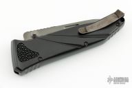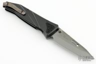 This CHI by Rockstead features a DLC mirror polished tanto blade with a notched thumbrest and dual thumbstuds. The handle is black aluminum with rayskin inlay, tip up black stainless steel clip and a single stainless steel liner. Comes with original box and papers. S/N 523. Excellent condition.