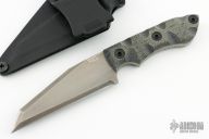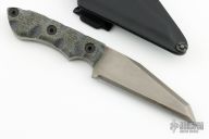 A T.Kell twist on the Wharncliffe blade with some Reverse Tanto thrown in. The Wharncliffe is often thought of as a go-to CQB blade with the Reverse Tanto being a close second. So why not make the ultimate CQB blade by combining the two and putting them on our famed Raider handle platform! The Guardian has a dead flat typical edge, We added reverse tanto style reverse edges and this thing turned out to be nothing but nasty. Keeping with the CQB blade theme it has a very steep 30 degree grind allowing the Guardian creates deep and wide cuts while maintaining a blade thickness to withstand it all. Made from high carbon steel heat treated to 57 HRC using our detailed heat treatment process. Made from .165 thick steel there's nothing you can throw at the Guardian that it cant handle. Made on our famous EDC handle platform it disappears along your belt line and has a secure grip that locks you to the knife in forward or reverse grip. Plated in the most durable blade coating on earth, our exclusive Nickle Boron T1C finish to provide a nearly indestructible blade coating that is so low in friction it flies thru cuts while completely protecting your blade from corrosion. The guardian is built for the same battle tough environments that all T.Kell blades have become known for. Perfected balance points, comfort of grip and EDC concealability make the Guardian a perfect backup or primary CQB item. You can count on the Guardian and you can count on T.Kell Knives to build you a blade that is unequalled in quality, durability, hand feel, and function. When your hand meets a T.Kell knife you'll instantly understand why we have become known for our blades that are so comfortable and balanced that they move with you.