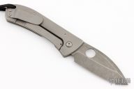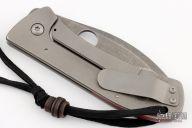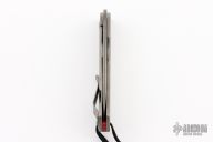 This Framelock Folder by Serge Panchenko features a drop point tumble finished blade with thumbhole. The handle has a tumbled titanium frame and tip up clip. Red g10 backspacer, and patina copper bead. Has a couple light scuffs and scratches, excellent condition otherwise. Marked Number 5 in the Backspacer.