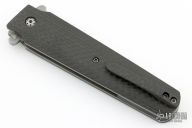 This Radical 194 Linerlock Flipper by Tom Ferry has an upswept tanto tumble finished blade. The handle has carbon fiber scales, carbon fiber backspacer, with bead blasted titanium liners and tip up carbon fiber clip. Very smooth flipper opening that requires no wrist action. Rides on bearings, Nice blade seating and detent, with good lockup. Excellent condition.