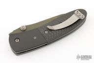 This Lightfoot LCC D/A side opener by Microtech has a green blade, black aluminum bolsters, and carbon fiber scales. Stainless steel clip and liners. Dated 12/2002 and #8895. Has some scuffs, otherwise good condition. Includes a Mictrotech box, not original.