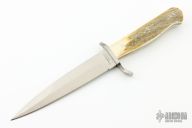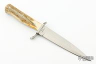 It was 1915 when Heinrich Boker & Co. Solingen received the government order to develop a compact fighting knife that would be especially useful for trench warfare. After 90 years, we are reproducing the original knife blade out of high carbon steel with 0.75% carbon. The pronounced steel cross guard, the stag forearm handle, (designed for a firm and safe grip). On the back of the blade, each knife shows its serial number, this one is 5164. Excellent condition.