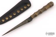 The knife by Meathook Customs features a gun blued blade with a hidden tang construction. .2" Blade Stock. .490" Blad Depth. The handle has a bamboo carved brass grip. Includes a kydex sheath. Excellent Condition.