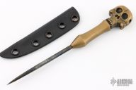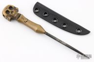 The ice pick by Meathook Customs features a gun blued blade with a hidden tang construction. .201" Blade Stock. The handle has a carved brass grip. Includes a kydex sheath. Excellent Condition.