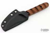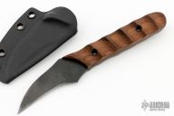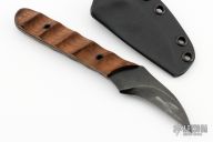 The Diavel by Ironside Edge Works features a black hawkbill style blade with .114" blade stock and .857" blade depth, full tang construction. The handle has American walnut scales.  Includes a kydex sheath.  Has light sheathing marks otherwise Excellent Condition.