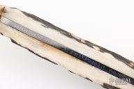 This EK Commando features a mirror polished blade with false top edge and gold inlays, .187" blade stock and 1.265" blade depth, full tang construction. The handle has an engraved brass guard and screws with stag scales. Comes with original glass case, papers and patch. Blade reads "Deluxe 50" "No. 17 of 50". Tang reads "Celebrating 50 years as America's Finest 1941-1991" "Ek Commando Knife Company Richmond, Virginia" Excellent condition.