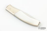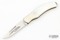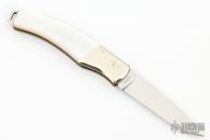 This lockback by Parker has a mirror finished blade with nail nick. Nickel silver bolsters, mother of pearl covers, brass liners, stainless steel spring. Excellent condition.