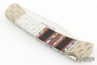 "This old classic BUCK knife 110 "Folding Hunter" was first introduced in 1965 - it has been BUCKS mainstay ever since. Some say the Buck 110 is the most copied knife in the world. This Buck automatic knife has been modified by Painted Pony, with a mirror polished blade, fileworked spine and spring, nickel silver frame and a button that opens knife automatically. Decorated with abalone, copper, and other spacers. A must for any BUCK collection." Has a few light scratches, otherwise excellent condition. Fires nice and strong!
