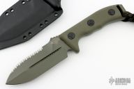 This Crosshair has a green coated partially serrated double edged blade with a green polymer handle. .200" blade stock and 1.699" blade depth, full tang construction. Comes with kydex sheath.   S/N 01220 and dated 01/2013. Excellent condition.