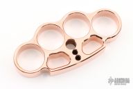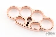 This Model #11, 4-finger knuckle by WK21 is made from solid .500” thick 110 Copper. The dimensions are approximately 4.25” x 2” x .5” with 1" diameter finger holes. Polished finish. Woody Knuckle design and finishing process. Individually boxed. 100% Made in the USA. New from maker.