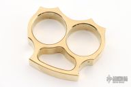 This Model #4, 2 finger brass knuckle by WK21 is made from solid .500” thick 360 Brass. The dimensions are approximately 2.375” x 2” x .5” with 1-inch diameter finger holes. Two-tone finish. Woody Knuckle design and finishing process. Individually boxed. 100% Made in the USA. New from maker.