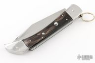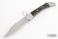 Angelo Campolin Sr. was born in 1923 in Maniago, Italy. He worked on perfecting his knife making skills before WWII and at this time made his first switchblades. After the war, in 1947 he started his company and made 30 stilettos with the marking “Angelo Campolin”. In the 1970’s Angelo’s son Gianni started to work in the company and they were specializing in folding hunting knives and also manual folding stilettos for the Robert Klaas company in Solingen Germany with their Kissing Cranes mark. In 2002 American switchblade collectors Dan Fuller, Brad West, and Tim Zinser were visiting Maniago and enjoying a few glasses of wine in a bar with Angelo Jr. and Gianni. The discussion was about a new name for some knife projects they wanted to pursue. It was Brad West that suggested the tang stamp should be AGA, for Angelo, Gianni, Angelo, thus representing three generations in the knife making business. The Campolins liked it and it stuck. In the beginning it was just a few items, but grew to the point where now there are 12 models and different scale options. The goal has been to offer quality switchblades using the old methods and traditions. Being a collector himself, Angelo Jr. knows what others like. The company headquarters has moved to Austria with production still in the original Maniago shop, as well as the others in Maniago that produce the knives for A.G.A. Campolin.