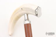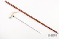 This sword cane by WC Johnson features an 17" mirror polished 440C triangle blade. The shaft of the cane is cocobolo with a warthog tusk handle. Excellent condition.