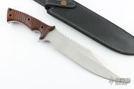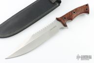 This Fighter by RCF Combat features a satin finished blade, .217" blade stock and 1.801" blade depth, full tang construction. The handle has walnut wood scales with tube pins. Comes with a black leather sheath. Has some light scratches, otherwise excellent condition.