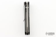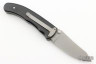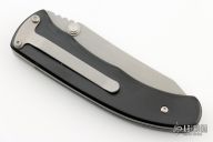 The Longhorn by Lone Wolf Knives features a bead blasted blade with dual thumbstuds and notched thumbrest. The handle black widow scales, stainless steel liners and tip down pocket clip. Excellent condition.