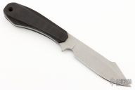 This Fodder Buster by Jason Stout features a clip point blade with false top edge, .159" blade stock and 1.151" blade depth, full tang construction. The handle has dyed black micarta scales with lanyard hole. Excellent condition.