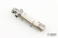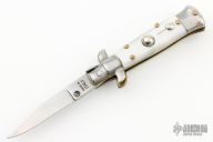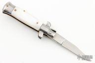 This auto features a clip point blade. Stainless steel front and rear bolster and pearlex scales. Brass liners. Nice function, strong firing. Has some light scratches, otherwise great condition.