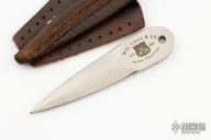 This Thumb Dagger by HG Long and Co features a satin finished double edged blade and handle, .138" blade stock and .660" blade depth, integral construction. Comes with a black leather wallet sheath that can be sown into clothing. Excellent condition.