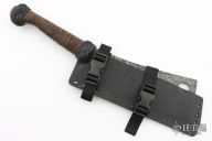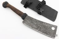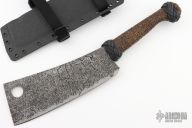 This Cleaver by James Helm features a hand forged clip point upswept blade with .269" blade stock and 4" blade depth, hidden tang construction. The handle has hemp wrap. Comes with a kydex sheath. New from Maker at the Blade Show West 2023.