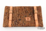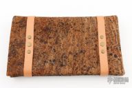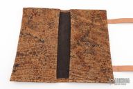 This 8-Knife Case by Robertson Leather Works is made from Hand Dyed Elephant Leather. It has leather straps with buckles. The pockets are 5" by 2.5". New from maker at the 2023 Blade Show West.