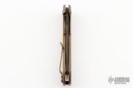 A striking difference when compared to the previous edition is the type of steel. After all, this knife is made from ZDP189 steel. A stainless type of steel that is known for its exceptional hardness and how well it retains its sharpness. Definitely a type of super steel. The standoffs between the two handles are stylishly coated in black. Just like the blade. The handle has been enhanced with a coyote-tan DLC coating. The geometric design on the presentation side of the knife looks great and offers you enough grip!