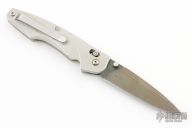 This Benchmade Osborne 771 features a dark tumble finished drop point blade. The handle has an aluminum frame with a stainless steel pocket clip. Scuffs and scratches are visible otherwise the knife is in excellent condition.