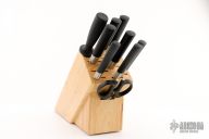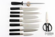 If you love to cook, your kitchen just isn't complete without Kershaw's KAI Wasabi Black knife set. From specialty knives like the Nakiri to must-haves like the 8-inch Chef's knife, this set has the knives that will help make your time in the kitchen a pleasure. The set comes in its own laminated bamboo block with extra open slots so you can continue to expand your collection.