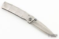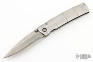 This Bamboo Linerlock from MCUSTA features a drop point San Mai Damascus blade with dual thumb studs. The handle is comprised of bamboo styled Damascus over damascust backspacer. Comes with original box and velcro case. Excellent conidtion.