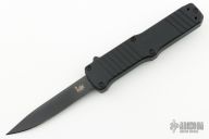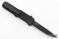 This Timult double action OTF auto by Heckler and Koch features a black clip point blade. Black aluminum frame with tip down black stainless clip, left or right reversible. Comes with original box. Excellent condition.