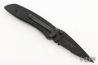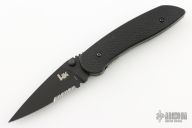 The H&K Scorch Code 3 features a unique dual-action design. The black blade is D2 tool steel with notched thumbrest and dual thumbstuds. The handle is textured black FRN with black stainless steel liners and tip down clip. Comes with original box, papers, and drawstring pouch. Has a couple light scuffs, excellent condition otherwise.