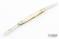 This slipjoint by Case Knives features mirror polished blades with nail nicks. The handle has nickel silver bolsters with nickel silver liners, imitation pearl covers, and a stainless steel spring. Excellent Condition.