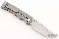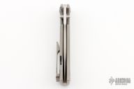 This Chaves Ultramar Liberation Drop point features a satin finished blade with the Chaves logo. The handle is made up of tumbled titanium, skull pocket clip (positioned for tip up carry), and a matching titanium backspacer. Comes with original box and a spare titanium pocket clip. Comes with original box, excellent condition.
