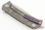 The UMMU! This awesome knife is designed by Aleksey Konygin and features a M390 blade, milled titanium scales & Backspacer, and a ZircuTi pocket clip. Opens by flipper tab on a multi row bearing pivot.  S/N 130. 4/2022.  Includes padded case and COA.  Excellent Condition.