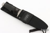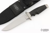 This Old Stlye LMF Tactical by Gerber features a bead blasted drop point blade with .229" blade stock and 1.233" blade depth, hidden tang construction. The handle has bead blasted stainless steel guard and butt and a rubber handle. Comes with black nylon sheath and original box. S/N 001937. Excellent condition.