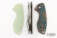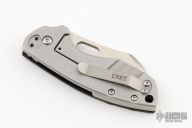 This Pilar by CRKT features a satin finished blade with thumbhole. The handle has a stainless steel frame with a custom laser engraved aluminum scale. Comes with a jade G-10 scale and a "Shipwreck" copper scale. Has a couple light scuffs, otherwise excellent condition.