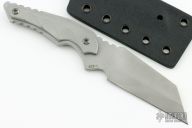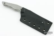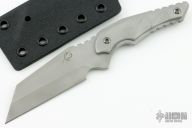 This BFF by Scorpion 6 Knives features a bead blast finish wharncliffe blade with notched thumbramp, .153" blade stock and 1.243" blade depth, full tang construction. The handle has matching aluminum scales. Comes with a kydex sheath. Has some scuffs, great condition otherwise.