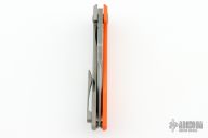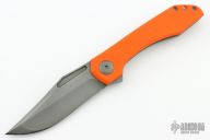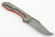 This Un-Bo flipper from Simeon Custom Knives features a smoke finished blade with flipper and milled thumbhole. The handle has a G10 and Titanium frame with a titanium tip up pocket clip. Comes with a padded case and COA dated OCT 2023.  Rides on bearings, nice detent, lockup and blade seating. New from maker!