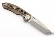 This F3 Large by Curtiss Knives features a two-tone stonewash finished Magnacut blade with notched thumbrest and flipper. The handle has an oval Tac-Mill and anodized titanium frame over notched titanium backspacer, titanium tip up clip. Smooth and fast opening using a Caged Bearing System. Nice blade seating, detent and lock up. Includes the original box, pivot tool, zippered case and COA dated 10-11-23. New from maker.