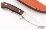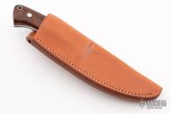 This Drop Point Hunter by Wayne Hendrix features a mirror polished drop point blade with .192" blade stock and 1.045" blade depth, full tapered tang construction. The handle has a stainless steel guard and ironwood scales over black liners. Includes a brown leather sheath. Marked 032 on the under side of the tang and dated 2009 on the blade. Excellent condition.