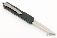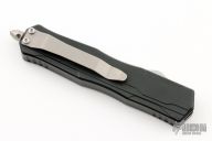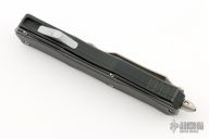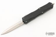 This Manis OTF Auto by No Limit Knives features a satin finished double-edged blade. The handle has a black aluminum frame with a tip down stainless steel clip and glass breaker. Comes with a plastic hard case. Excellent condition.