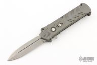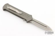 This Strelka OTF Auto by No Limit Knives features a bead blast finished blade. The handle has a grey aluminum frame with a tip down stainless steel clip. Comes with a zippered case. Excellent condition. Has some rattle in the open position.